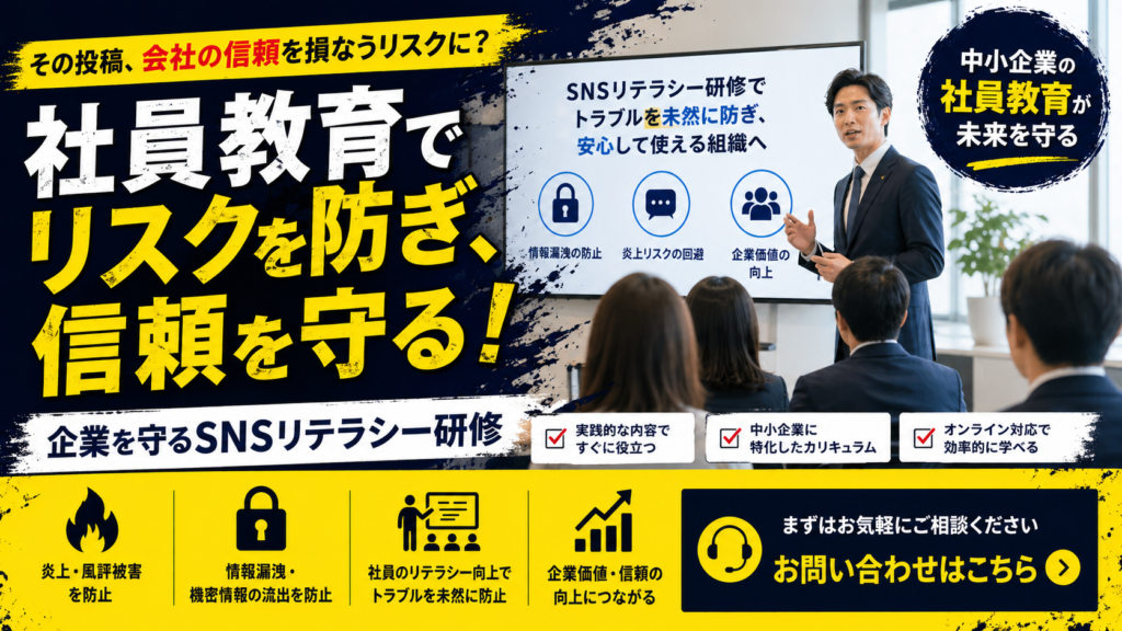 社員の投稿や認識不足が、企業の信用、採用、顧客対応に影響することもあります。